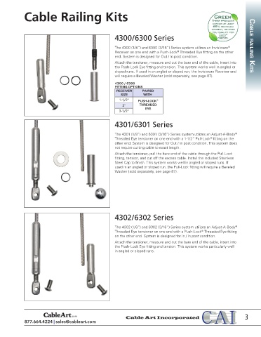 The 4300 (1/8”) and 6300 (3/16”) Series system utilizes an Invisiware Cable railing Kits