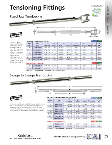 In-line turnbuckles are applied in longer cable runs to 1/8" 33A40302 1/4"- 20 3.75" 11.75" 8.75" .248"